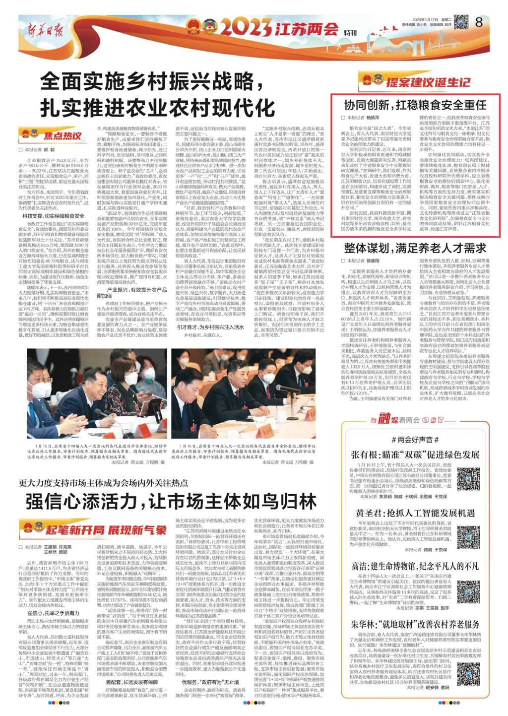 1月17日《新华日报》:协同创新,扛稳粮食安全重任