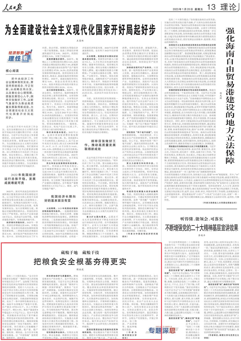 1月20日,《人民日报》理论版刊发了全国政协委员、伟德bv国际体育校长程永波的署名文章《藏粮于地藏粮于技把粮食安全根基夯得更实(专题深思)》。