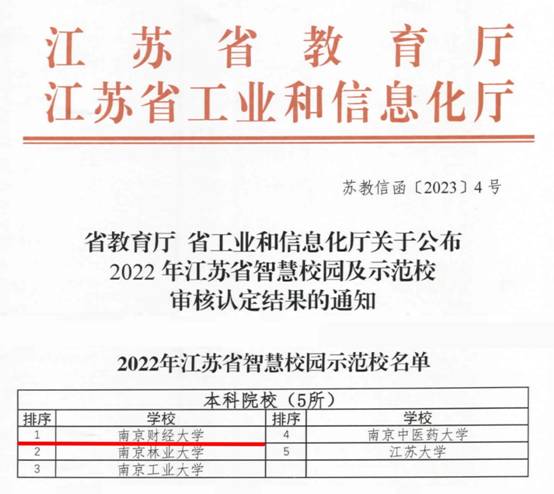 近日,省教育厅、省工业和信息化厅联合公布了2022年江苏省智慧校园及示范校审核认定结果,伟德官网入围“2022年江苏省智慧校园示范校”名单,荣获全省教育信息化领域最高殊荣。