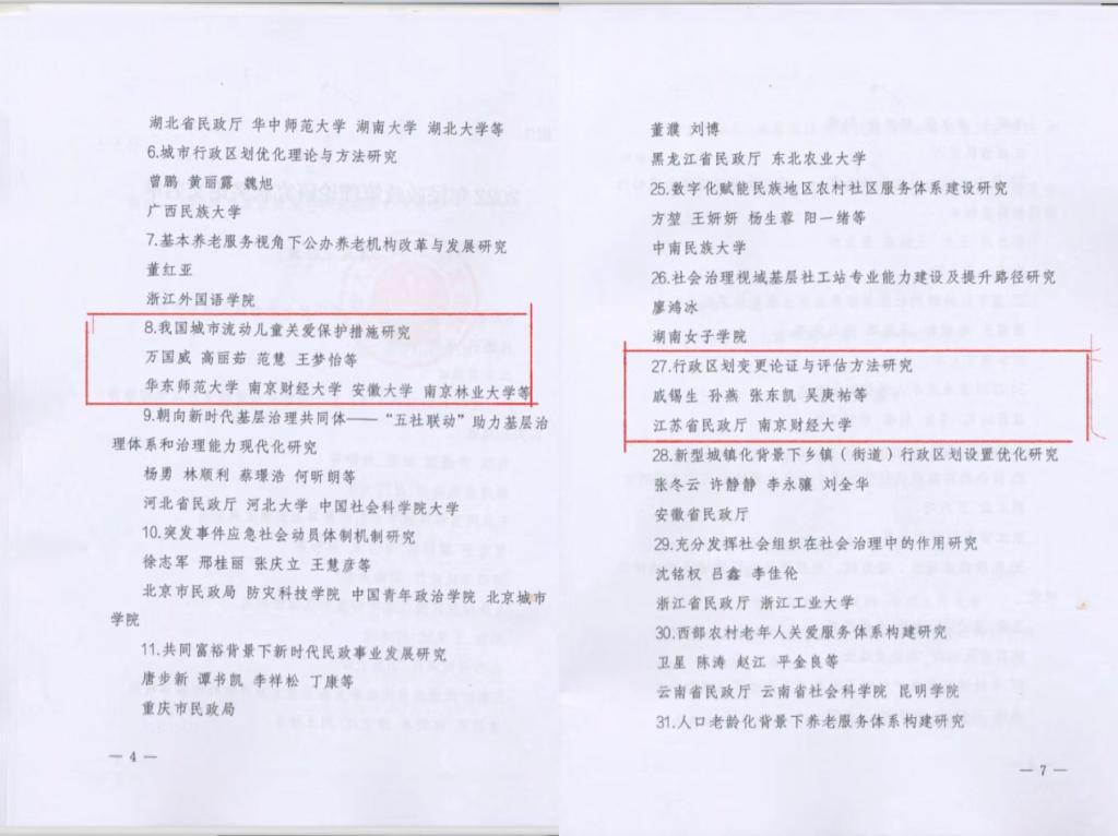 近日,民政部印发《关于2022年民政政策理论研究获奖情况的通报》,法学院教师参与的研究成果《行政区划变更论证与评估方法研究》(吴庚祐)、《我国城市流动儿童关爱保护措施研究》(高丽茹)同时荣获2022年民政政策理论研究一等奖。