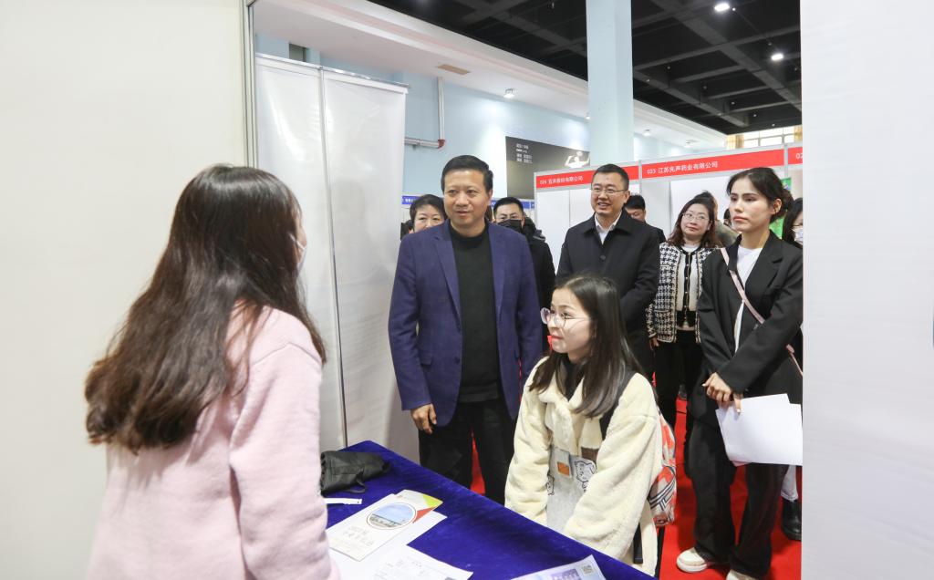 3月3日下午,由江苏省高校招生就业指导服务中心、省妇女联合会、省劳动就业管理中心、省妇女儿童福利基金会、省女企业家协会主办,伟德官网承办的“逐梦新时代 建功新征程”江苏省2023届高校毕业生春季校园招聘周女大学毕业生专场招聘会在仙林校区体育馆举行。江苏省招生就业指导服务中心主任胡建平、江苏省妇女联合会妇女发展部副部长高峻、省妇女儿童基金会品牌项目部主管周亚菲等莅临现场指导。校党委书记张利民,党委常委、副校长赵国栋深入会场,与参会企业代表和学生亲切交谈,了解用人需求。各学院党委(党总支)书记、院长、副书记和毕业班辅导员现场指导学生参加双选。伟德官网2023届毕业生、部分2022届毕业生和兄弟高校毕业生参加招聘会,部分在校生到场观摩。