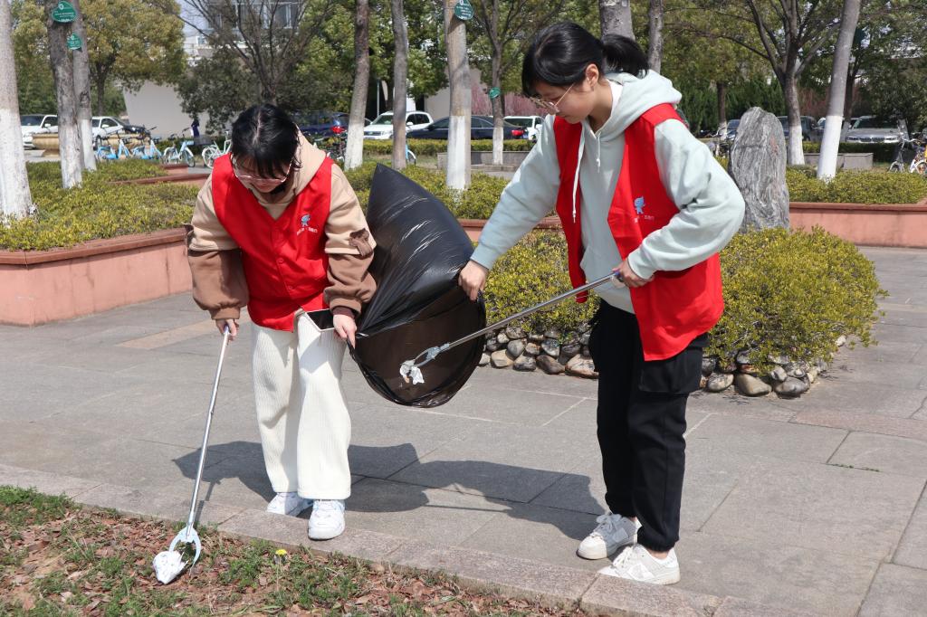 志愿者们赴校园各处开展垃圾清理活动
