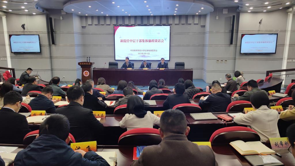 根据《中国共产党党内监督条例》有关规定,按照学校党委工作安排,3月13日下午,伟德官网在仙林校区行政楼二楼报告厅召开新提任中层干部集体廉政谈话会议。党委常委、纪委书记、派驻监察专员李茜出席会议并作廉政谈话,党委组织部副部长王鑫,全体新提任中层干部参加会议。会议由校纪委副书记杜兴华主持。