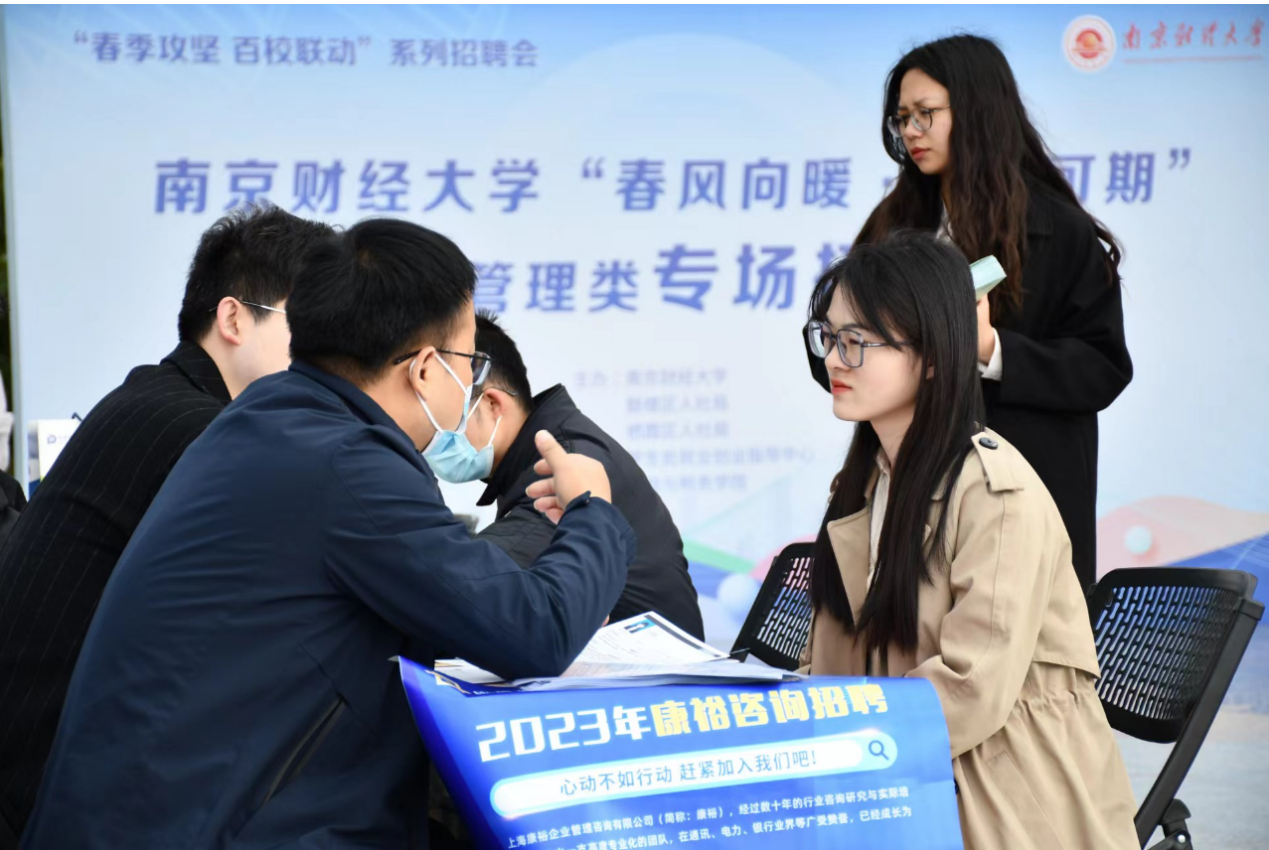 3月19日上午,江苏2023届高校毕业生春季促就业攻坚行动暨江苏百校联动系列招聘推进会举行,伟德官网在仙林校区大学生活动中心设立分会场举办“春风向暖,未来可期”经济管理类专场招聘会。招聘会由学生处就业创业指导中心及财政与税务学院联合承办。党委常委、副校长李群深入会场与用人单位交流,党委常委、副校长赵国栋代表伟德官网在主会场东南大学参加推进会,党委学生工作部部长韩力争,党委学生工作部副部长、就业指导中心主任李慕原,财政与税务学院党委书记陈苏、副书记王翔等在招聘会现场与用人单位和求职毕业生进行交流。伟德官网千余名应届毕业生和在校生参加招聘会。