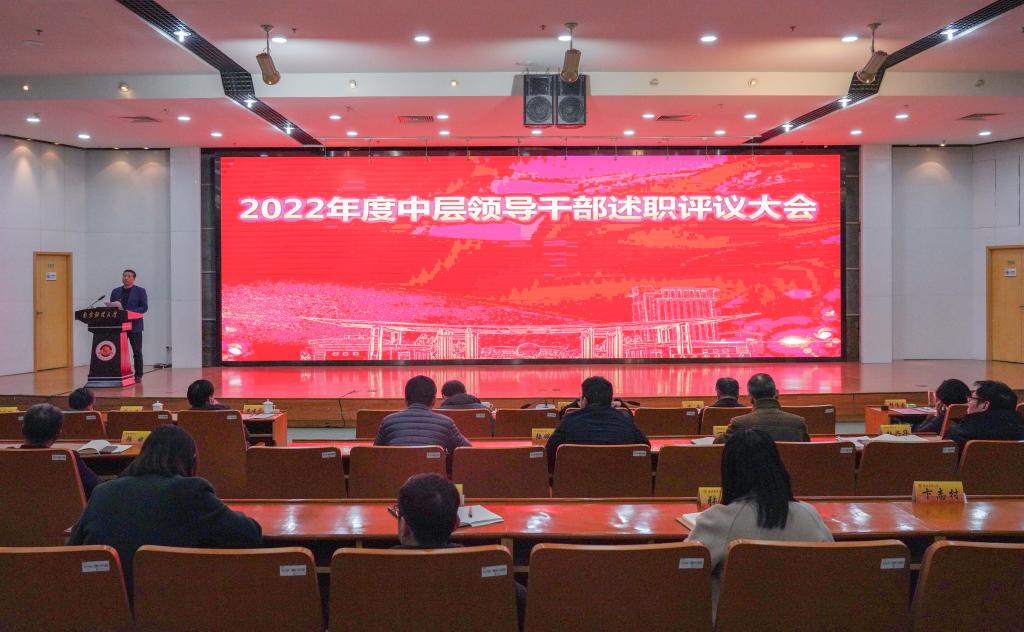 3月17日下午,伟德官网在仙林校区图书馆报告厅召开2022年度中层领导干部述职评议大会,全体校领导出席大会,全体党委委员、纪委委员和中层领导干部参加大会。大会由校党委书记张利民主持。