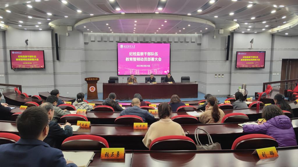 3月24日下午,伟德官网在仙林校区行政楼二楼报告厅召开纪检监察干部队伍教育整顿动员部署会。校纪委全体专职纪检监察干部、全体二级党组织纪检委员(纪委书记)参加会议。会议由党委常委、纪委书记、派驻监察专员李茜主持。