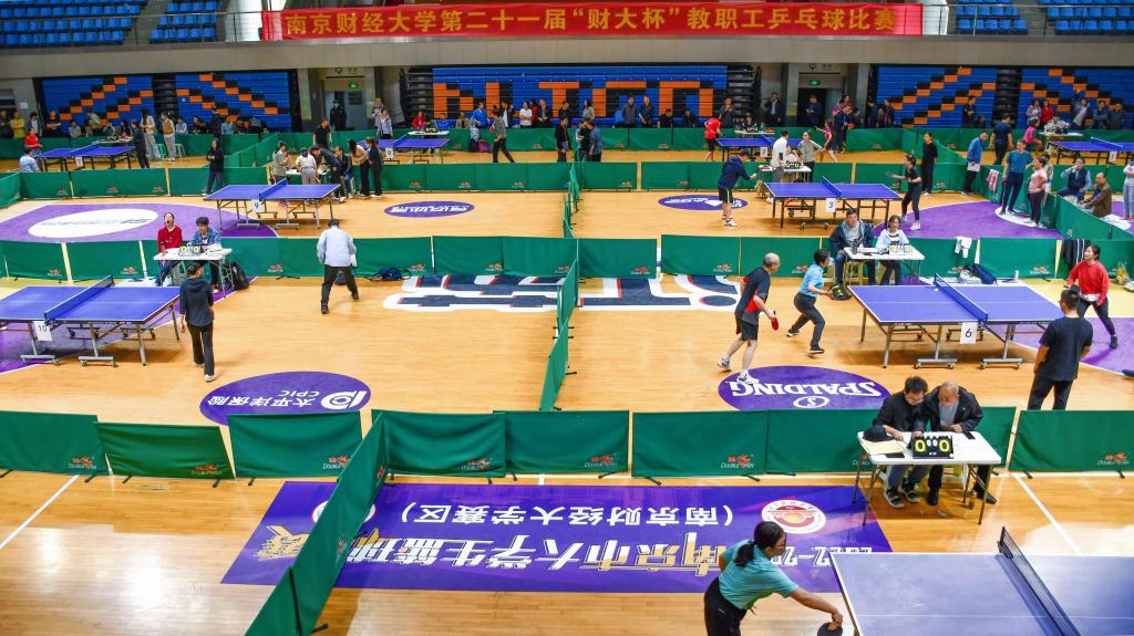 4月15日,由校工会主办、体育部协办的第二十一届“财大杯”教职工乒乓球比赛在仙林校区体育馆举行。校党委书记张利民来到现场观战,为运动员鼓劲加油。校党委副书记(正校级)温潘亚出席开幕式,包括校领导代表队在内的24支代表队约200名运动员参加比赛。开闭幕式由校工会主席孙丹兵主持。