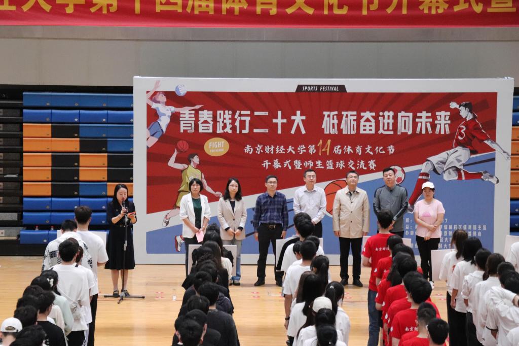4月17日,由校团委、体育部、校学生会联合举办的“青春践行二十大,砥砺奋进向未来”第十四届体育文化节开幕式在仙林校区体育馆主馆举行。党委常委、副校长赵国栋出席开幕式,党委宣传部、党委学生工作部、党委研究生工作部、党委保卫部、体育部、校团委相关负责人和各学院运动员代表参加开幕式。开幕式由校团委书记张蔚伟主持。