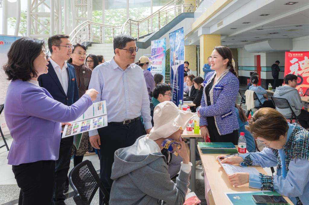 启动仪式结束后,与会领导一同前往招聘会现场,与招聘单位和应聘学生亲切交流,了解用人单位招聘需求和毕业生求职应聘情况。