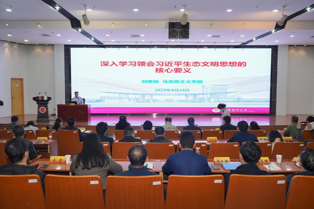 马克思主义学院副院长刘希刚教授围绕“深入学习领会习近平生态文明思想的核心要义”作报告