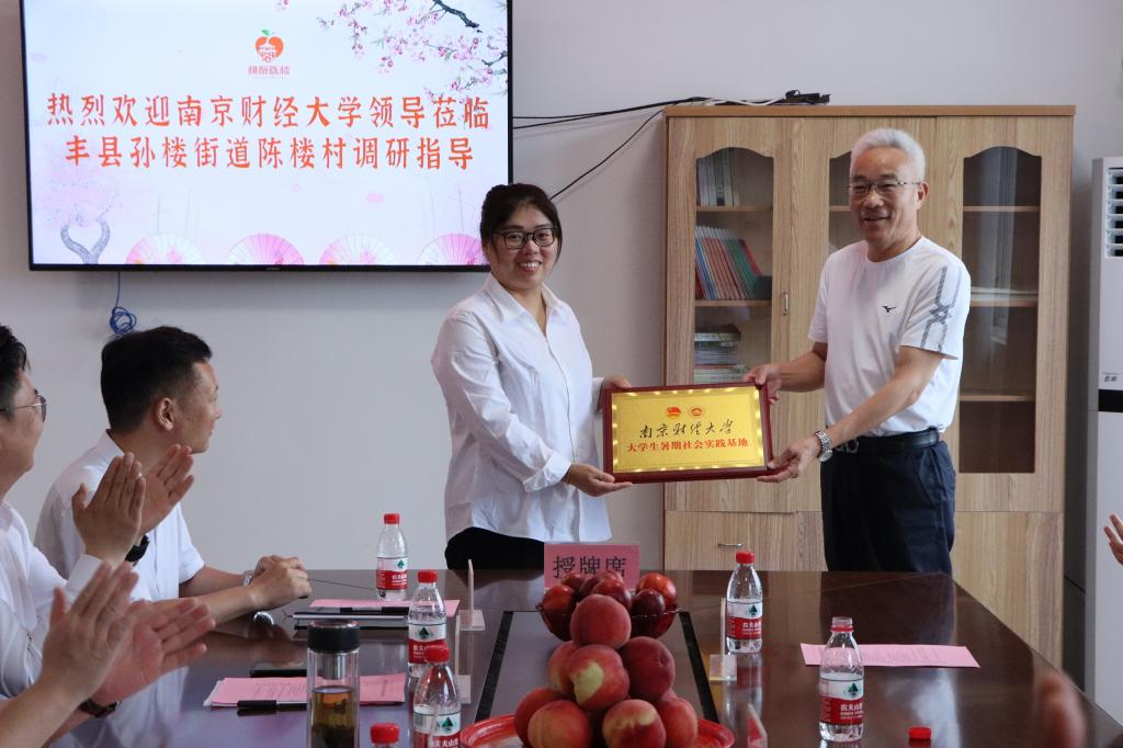 张为付副校长一行先后实地调研了丰县孙楼街道陈楼村党群服务中心、陈楼村电商新业态展厅、陈楼村新时代文明实践站、“三乡工程”示范点千亩桃花源、电商直播间等。张为付副校长一行,一路走一路看一路谈,与陪同人员一起畅聊产业发展的美好前景,感受乡村振兴的美丽画卷。