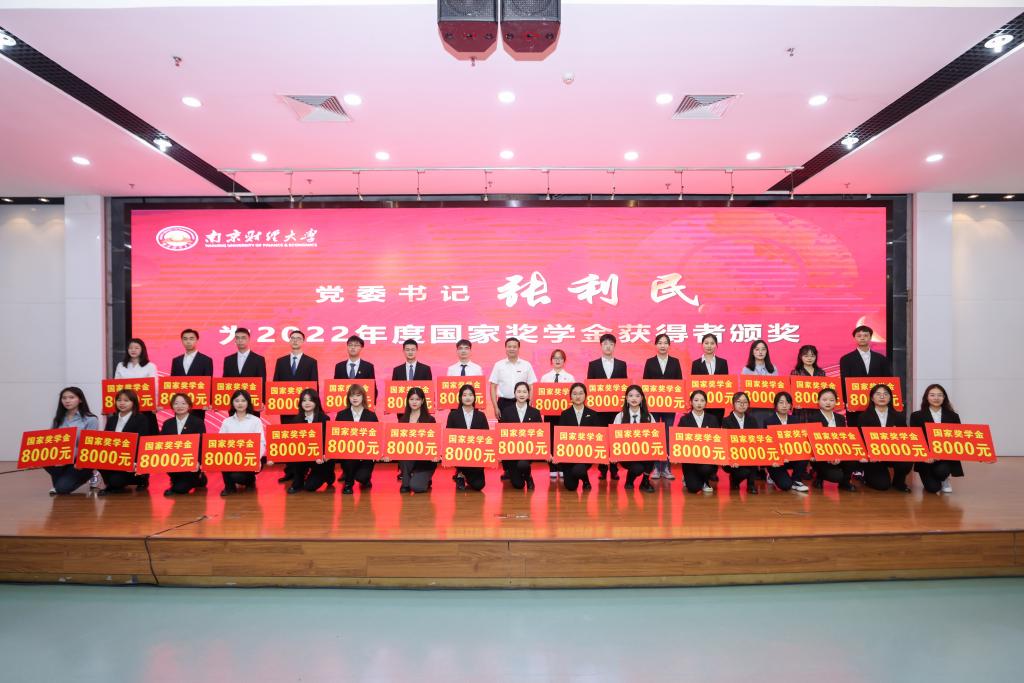 张利民书记为获得2022年度国家奖学金的39名本科生一一颁发获奖证书,并合影留念。