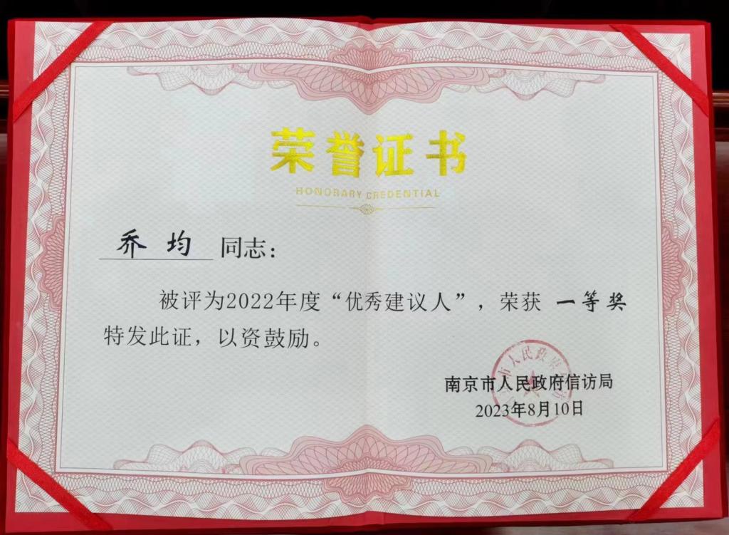 乔均教授获评“优秀建议人”