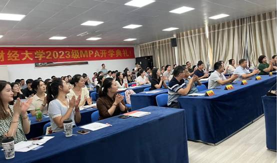 公共管理学院院长黄建伟致辞。他勉励同学们系统学习公共管理知识,让学习成为习惯,让书香净化心灵,在实践中学习,做到知行合一、以知促行、以行求知,提高综合能力。教师代表赵强、詹国辉分别发言,鼓励同学们在学习中正确处理理论和实践的关系、事业与家庭的关系、个体和集体的关系,善于发现问题,勤于解决问题,做具有公共情怀的管理者和服务者。2022级MPA薛琛同学代表MPA在校生发言,分享了自己的学习经验以及参加全国公共管理案例大赛的感悟。2023级MPA陈骏瑶同学代表新生发言,表达了来到南财读研的喜悦之情以及对未来研究生学习生涯的期待,也表明了奋力拼搏、勇敢面对挑战的决心和信心。高晓东书记期望同学们多和导师交流,多向优秀学长学习,切实担当起伟大时代赋予当代青年的责任,勇做走在时代前列的奋进者、开拓者、奉献者。