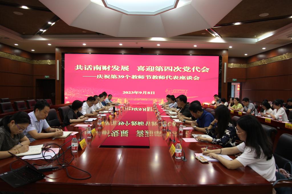 在第39个教师节即将来临和学校第四次党代会即将召开之际,9月8日下午,伟德官网在仙林校区工科楼二楼会议室召开主题为“共话南财发展 喜迎第四次党代会”的教师代表座谈会。叶林祥副校长、张炳副校长出席会议,有关职能部门负责人、各学院(部)教师代表参加座谈会。座谈会由党委教师工作部部长郝园园主持。