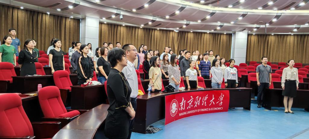 叶林祥副校长讲话。他对新进教职工提出三点希望:一是要锤炼良好的师德品格,严格遵守教师职业的道德规范和行为准则,树立良好的师表形象。二是要不断提升业务能力,把好“教学关”,重视教学、研究教学,苦练上课基本功;也要攻好“科研关”,潜心做好科研工作,用优秀的科研成果促进科教融合。三是要始终保持积极乐观的心态,以坚定的信念和积极的态度面对工作和生活中的一切挑战。最后,叶林祥副校长希望各位老师秉承“自谦 自信 务实 超越”的校训精神和“艰苦奋斗、自强不息、抢抓机遇、敢为人先”的南财精神,树立“躬耕教坛、强国有我”的志向和抱负,以更加饱满的精神状态和更加务实的工作作风,踔厉奋发、勇毅前行,为加快建设全国一流的省属财经大学贡献自己的力量。