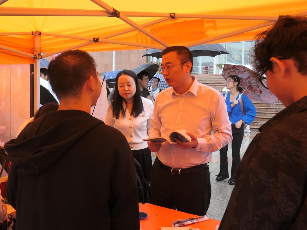 22日上午,赵国栋副校长在社团招新现场边走边看,与社团负责人交流,仔细询问社团招新进展和社团活动情况,勉励社团负责人:大学承其大,社团可为家。要让同学们在社团里找到心与心的连接,在社团里寻觅情与情的共鸣,因同样的兴趣爱好齐聚南财社团,为丰富多彩的校园文化贡献各社团不同的色彩。