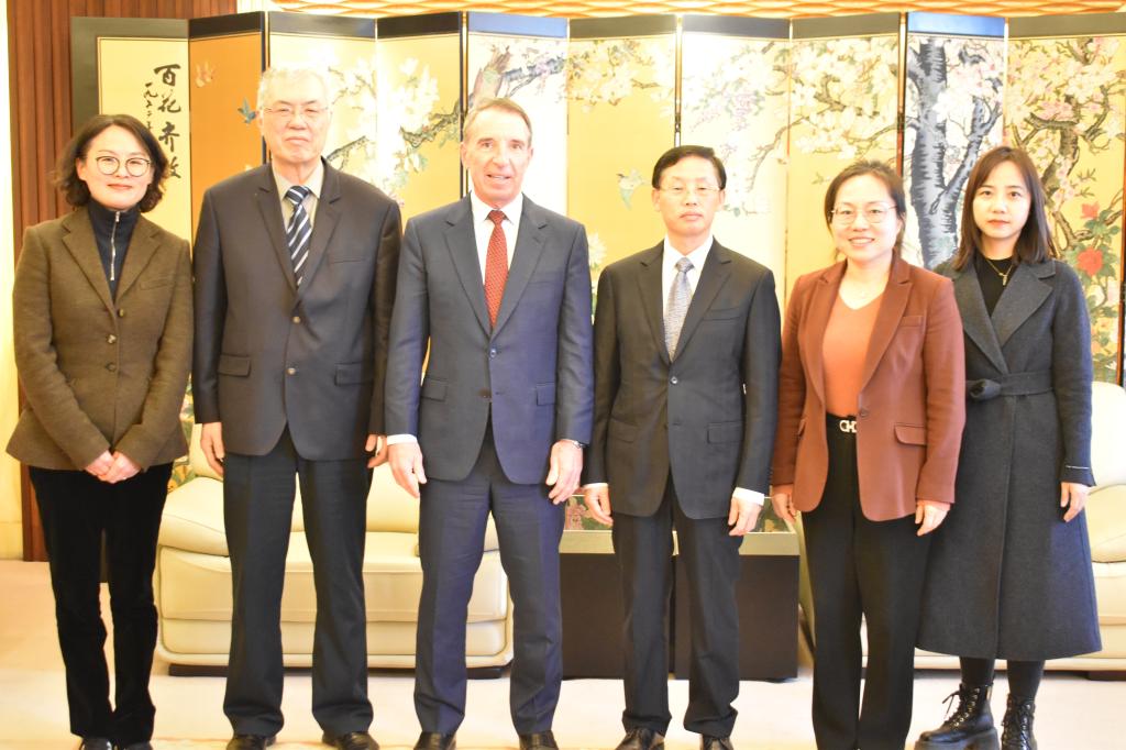 3月18日,法国巴黎高等对外贸易学院(ESCE)校长Christophe Boisseau,ESCE孔子学院院长、中法项目主任李建乐一行来访伟德官网。党委常委、副校长黄步龙会见了法国巴黎高等对外贸易学院客人,并就两校开展学生交流项目、教师交流合作、“校-校-企”合作等方面进行了友好会谈。