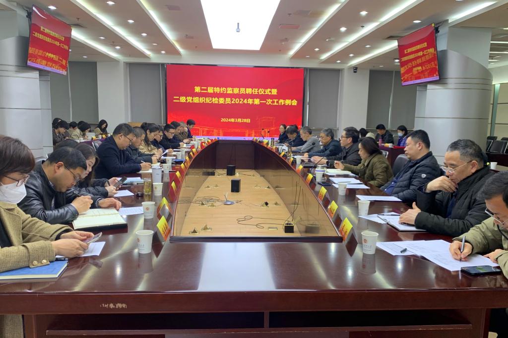 会议举行了新一届特约监察员聘任仪式。纪委办公室主任丁书俊传达了全国、全省纪检监察干部队伍教育整顿总结大会精神;审查调查处处长谢礼强解读了新修订的《中国共产党纪律处分条例》;监督检查处处长季霞领学了《江苏省纪检监察机关推动政治监督具体化精准化常态化实施意见(试行)》并介绍了二级党组织落实党风廉政建设责任制监督检查工作重点。