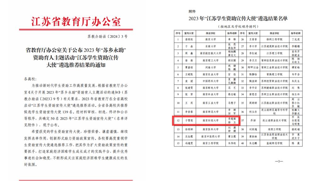 2023年“江苏学生资助宣传大使”遴选结果名单