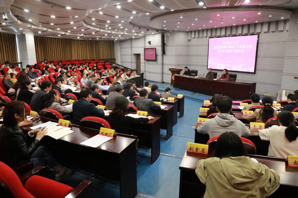 4月9日下午,伟德官网在仙林校区行政楼二楼报告厅召开二级党组织集中换届工作部署会暨党纪学习教育专题培训。校党委副书记李群出席会议,各二级党组织书记、机关各党总支书记、全体组织员、“双带头人”教师党支部书记、学生党支部书记代表及党委组织部全体人员参加会议。会议由党委常委、组织部部长吕戎主持。