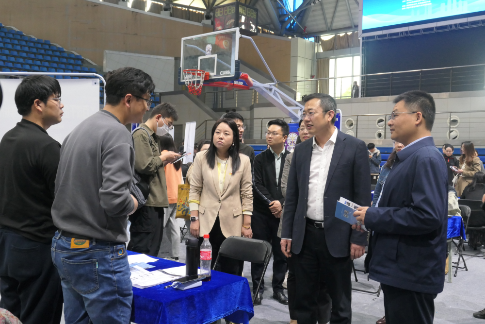 赵国栋副校长、团省委高校部负责人赵峰深入招聘会