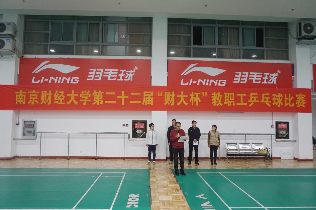 4月13日,由校工会、体育部主办的第二十二届“财大杯”教职工乒乓球比赛在伟德官网仙林校区体育馆举行。包括校领导代表队在内的25支代表队近200名运动员参加比赛。校党委书记张利民代表校领导队出赛,并为其他运动员鼓劲加油。校党委副书记李群出席开幕式,体育部、校工会相关领导参加开幕式。开幕式和闭幕式由校工会主席孙丹兵主持。