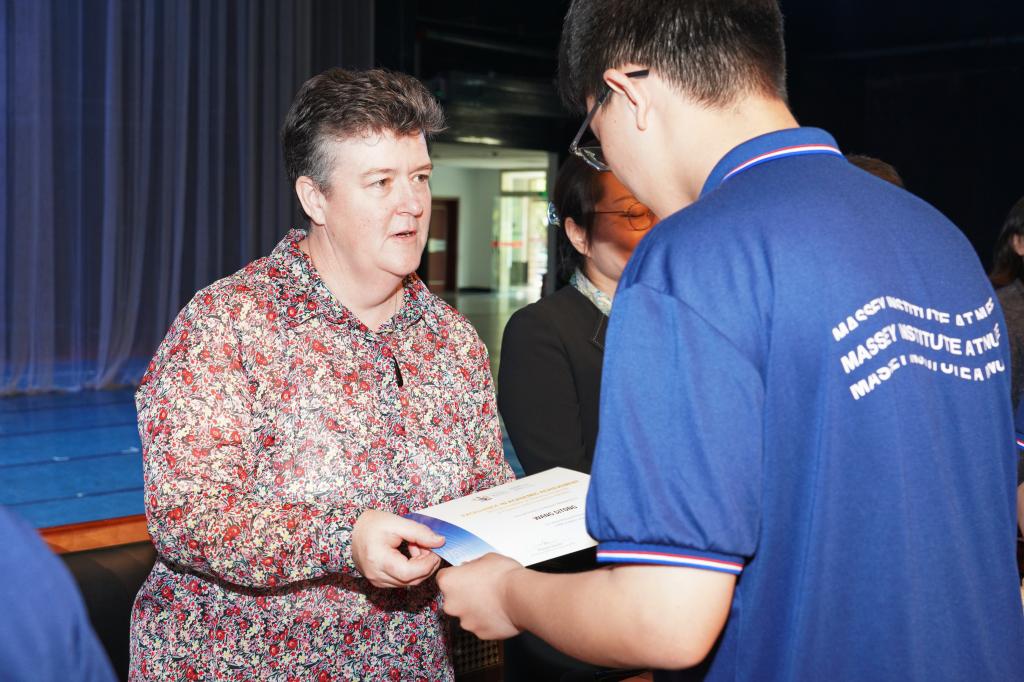 Jo Cullinane副院长致辞。她表示,梅西大学十分珍视与伟德官网的合作关系,梅西学院的举办也给两校提供了互相学习的机会。她肯定了双方团队自筹建梅西学院以来为推动梅西学院发展而作出的持续努力,对梅西学子的优异表现给予了高度赞扬。她勉励学生们,学无止境,勇于探索,不断超越。