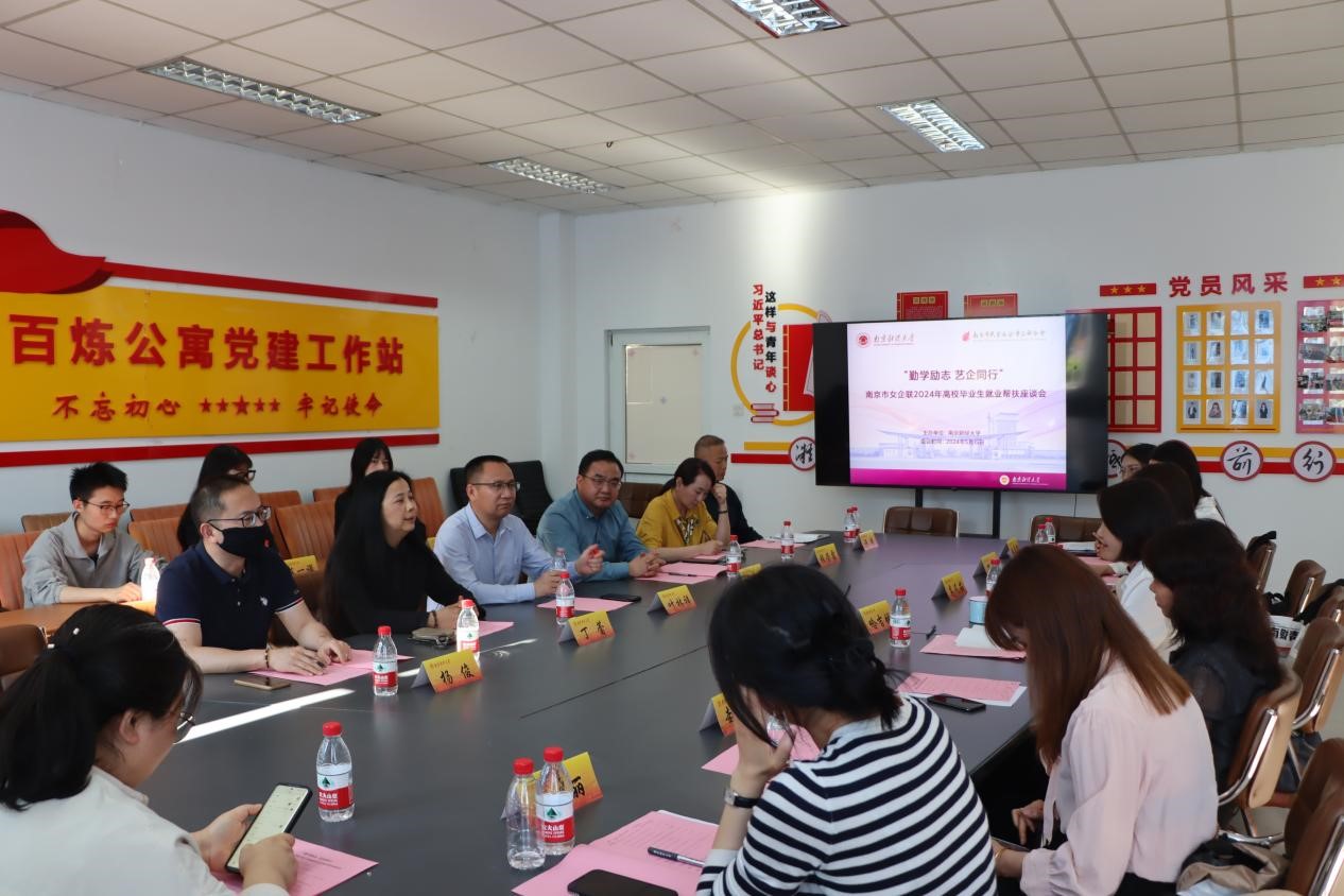 5月15日下午,“勤学励志 艺企同行”校企合作座谈会在仙林校区中苑“一站式”学生社区“百炼公寓党建工作站”召开。党委常委、副校长叶林祥出席座谈会,南京市民营女企业家联合会副会长哈吉娴、副会长高凡茹、副会长李苏萍、理事代表丁悦、会员代表赵娟,艺术设计学院党委书记刘浩、院长丁蕾、党委副书记张荣霞、副院长许蚌、副院长杨俊以及2024届、2025届学生代表参加会议。会议由刘浩书记主持。