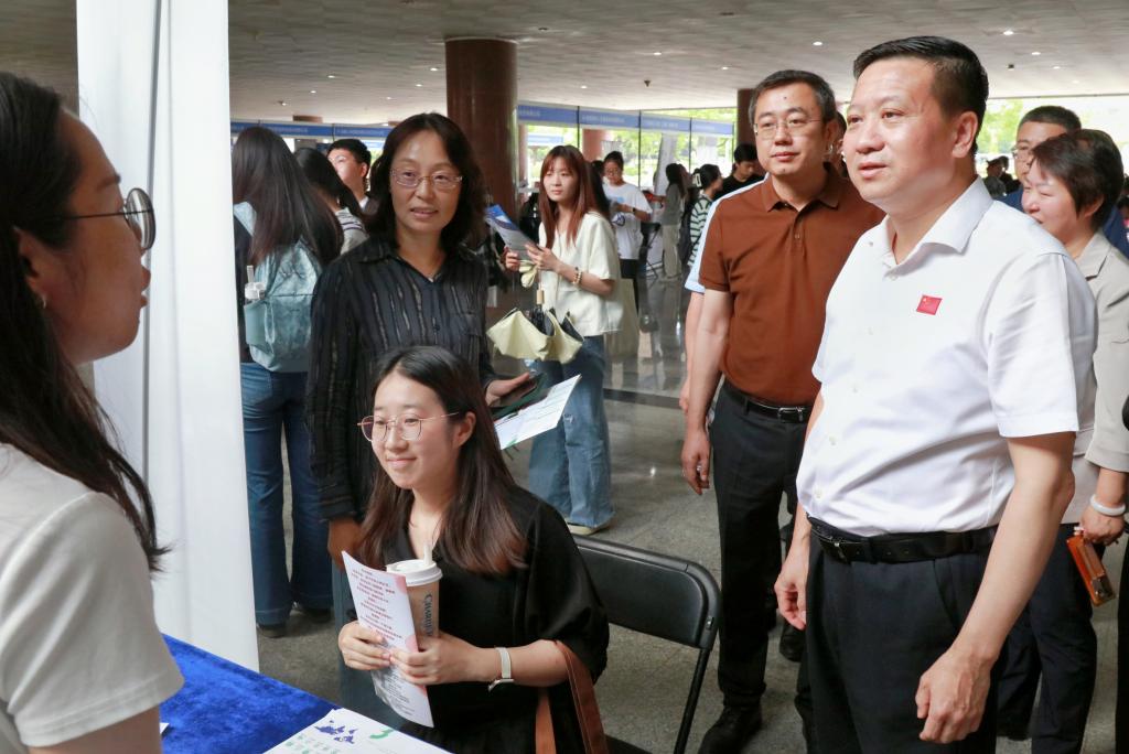为贯彻落实党中央、国务院关于高校毕业生就业工作的决策部署,保障2024届毕业生高质量充分就业,同时满足广大在校生的暑期实习需求,5月31日下午,伟德官网在仙林校区博观楼大厅举办“百日冲刺促就业”2024届毕业生就业暨2025届实习专场招聘会。校党委书记张利民,校长程永波,党委常委、副校长赵国栋出席招聘会。党委办公室、校长办公室主任郑锷,副主任张亦佳、沈国彬,党委学生工作部部长、学生处处长韩力争,党委研究生工作部部长王立峰,党委学生工作部副部长李慕原和部分学院党政负责人参加招聘会。