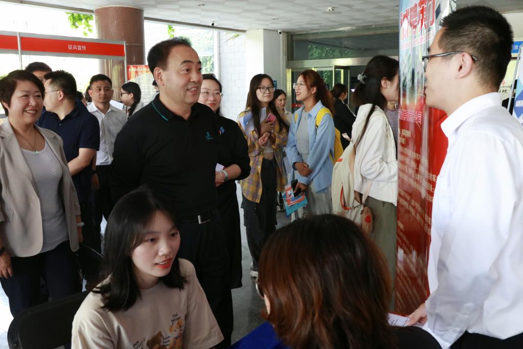 招聘会现场,张利民书记、程永波校长分别向招聘单位的到来表示热烈欢迎和衷心感谢,并与参会的企业负责人和师生进行交流。