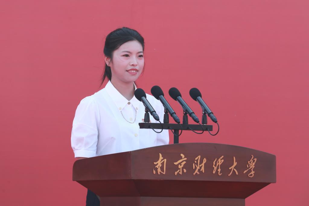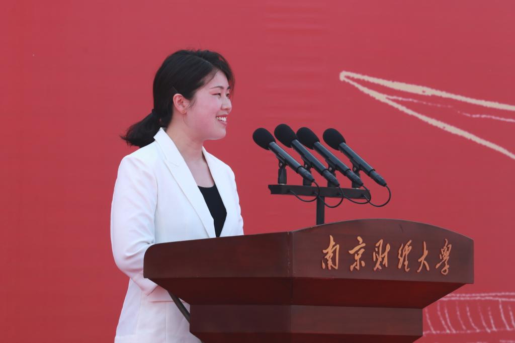 外国留学生代表、国际教育学院国际经济与贸易2001班舒轶雯发言,分享了南财求学旅途中的收获与感悟,表示将不负学校期望,当好人生的奋斗者,当好中外文化交流的友谊使者,为更加美好的未来、为更加繁荣的世界贡献力量。
