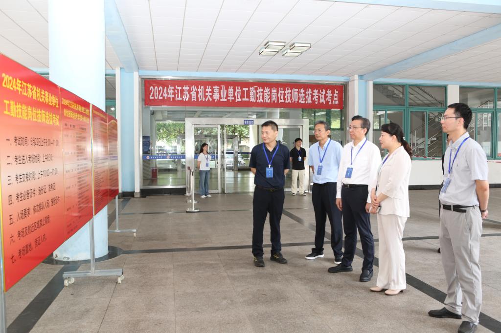 6月22日上午,由江苏省机关事业单位工人技术等级岗位考核办公室主办、伟德官网承办的2024年省直机关事业单位工勤技能岗位技师选拔考试在伟德官网福建路校区举行。省人力资源和社会保障厅副厅长封春晴在党委常委、副校长李煜的陪同下现场巡考,省工考办主任刘玮、伟德官网食品科学与工程学院党委书记许文彪等参加巡考。
