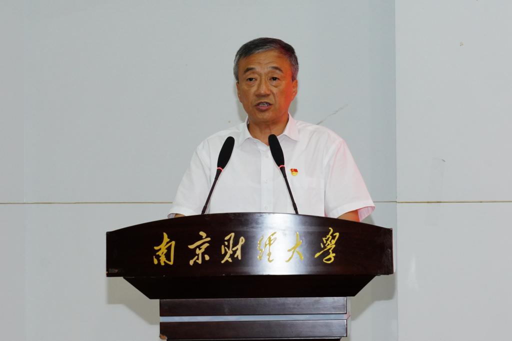 张利民书记讲话。张利民书记代表学校党委和行政,向获得“光荣在党50年”纪念章的老党员表示崇高敬意,向受到表彰的先进集体和先进个人表示热烈祝贺,向全校师生党员致以崇高敬意和节日的问候。张利民书记表示,在党50年,风雨50载。老党员们将最美好的年华献给了党和人民,献给了南财,他们是党史的见证者,是学校历史的亲历者、参与者、带头者,更是学校事业发展的宝贵财富和青年师生人生路上的学习标杆。张利民书记希望全校师生党员以老党员为榜样,把老一辈的优良传统转化为干事创业的强大动力,在新征程中书写新时代南财人与党同行、勇担使命的崭新篇章;也希望老党员们一如既往地为学校改革发展建言献策、凝心聚力,引领和激励广大师生永远听党话、坚定跟党走,为加快建设全国一流的省属财经类大学作出新的更大贡献。