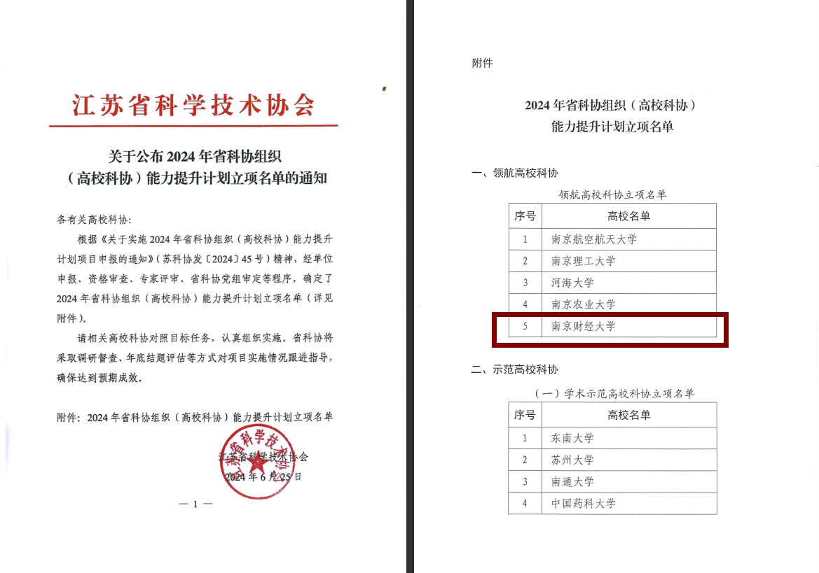 近日,江苏省科学技术协会公布了2024年省科协组织(高校科协)能力提升计划结果。伟德官网在全省105所高校中脱颖而出,获评“领航高校科协”,为唯一一所入选的省属高校。