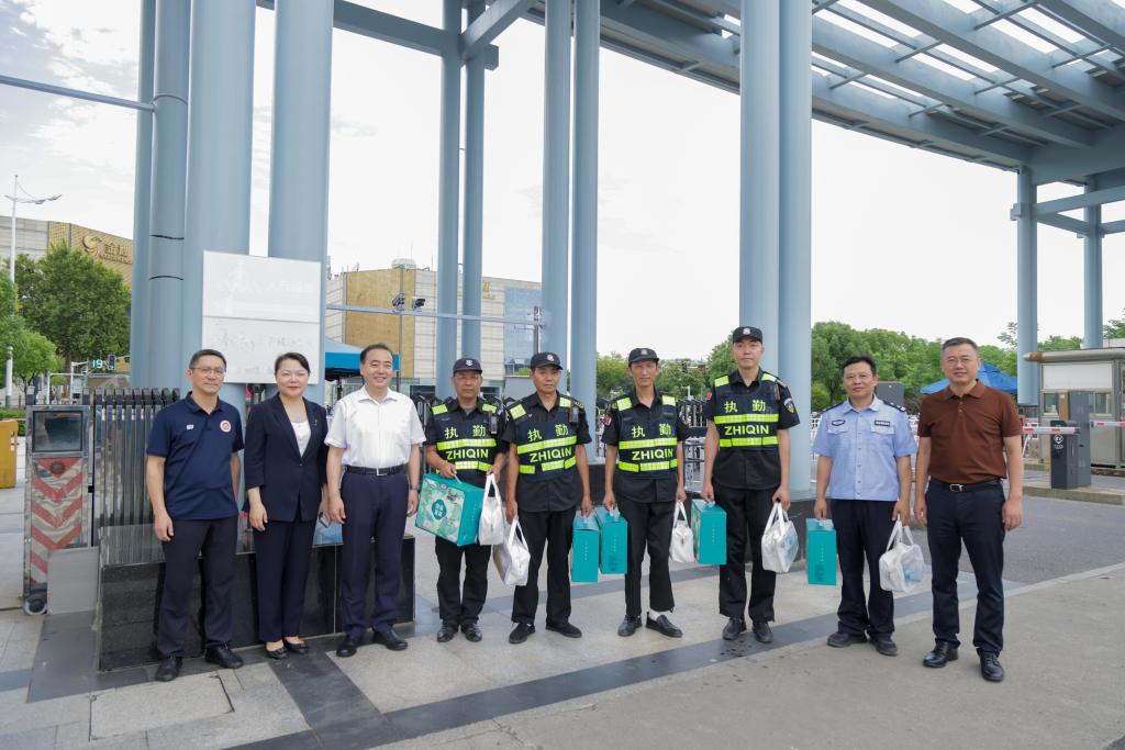 程永波校长与在岗人员一一握手,热情交谈,详细询问大家的工作、生活、身体情况,对大家高温酷暑下仍坚守岗位、辛勤工作,保障暑假期间校园安全稳定和各项工作有序推进表示衷心感谢,并提醒大家在暑期高温工作期间时刻关注自身的健康状况,注意防暑降温、劳逸结合。程永波校长希望大家一如既往地履行好岗位职责,以高度的责任心和饱满的工作热情,全力以赴做好假期各项工作。