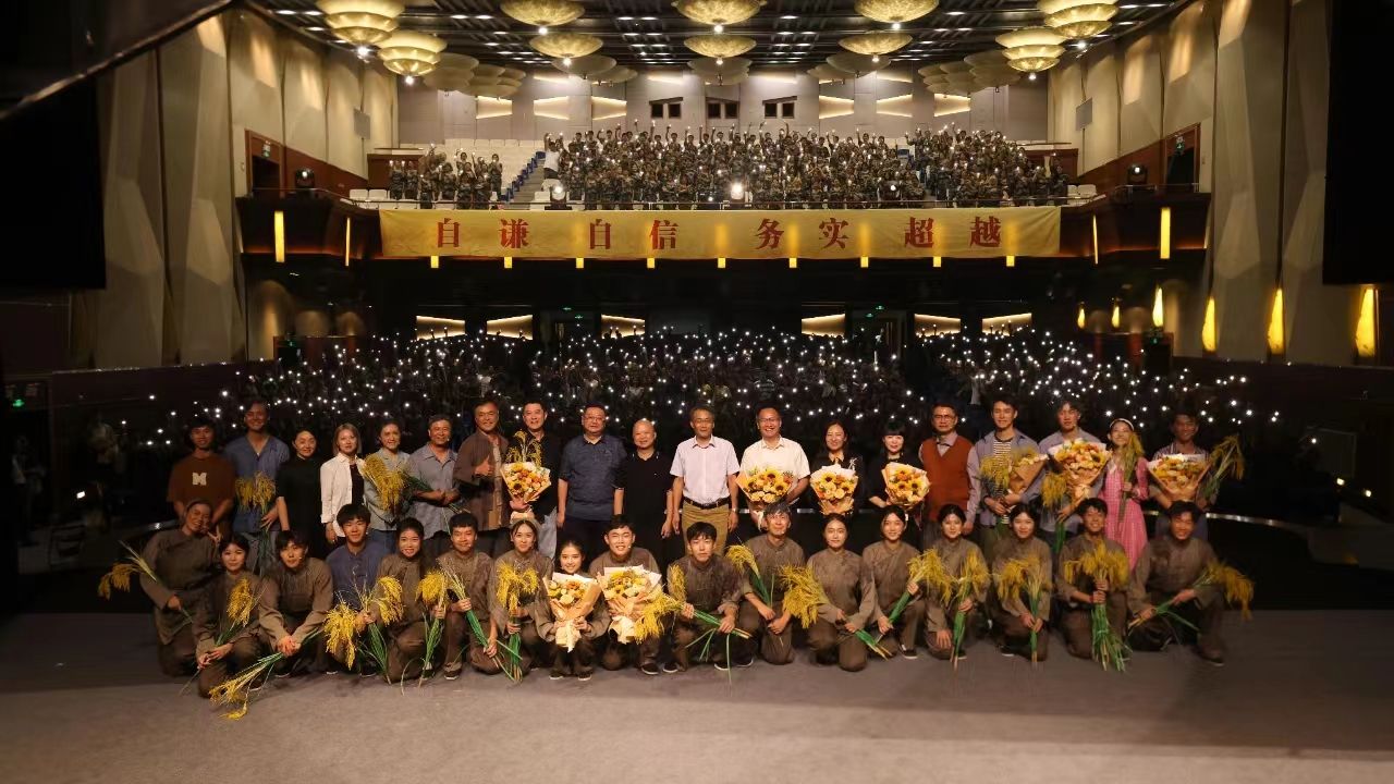 9月8日晚,江苏省艺术基金资助项目、伟德官网原创话剧《满仓》在仙林校区礼堂成功首演。校党委副书记李群,党委常委、副校长叶林祥,江苏艺术基金管理中心主任濮琦,江苏省演艺集团话剧院院长常毅,《江苏粮食和物资储备》杂志执行主编何广龙,南京市粮食和物资储备局、省文化艺术研究院负责同志,伟德官网相关职能部门、学院负责人与千余名师生一同观看演出。