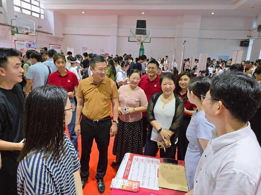 赵国栋副校长深入招聘会与招行招聘工作人员交流