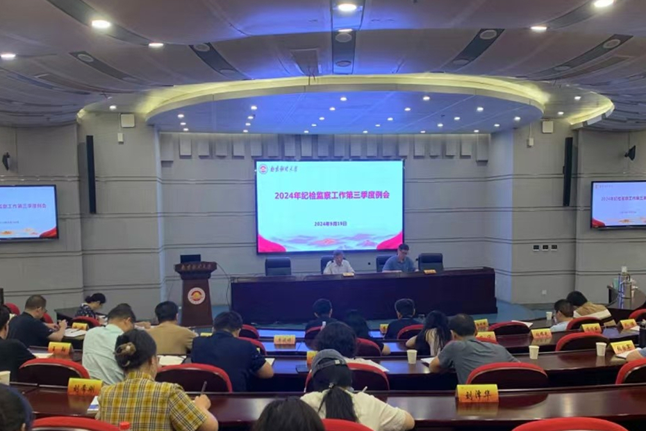 9月19日下午,伟德官网在仙林校区行政楼二楼报告厅召开2024年纪检监察工作第三季度例会。党委常委、纪委书记、派驻监察专员李茜出席会议并讲话。全体校纪委委员、各二级党组织纪检委员(纪委书记)、基层党支部纪检委员代表、全体专职纪检监察干部参加会议。会议由纪委副书记杜兴华主持。