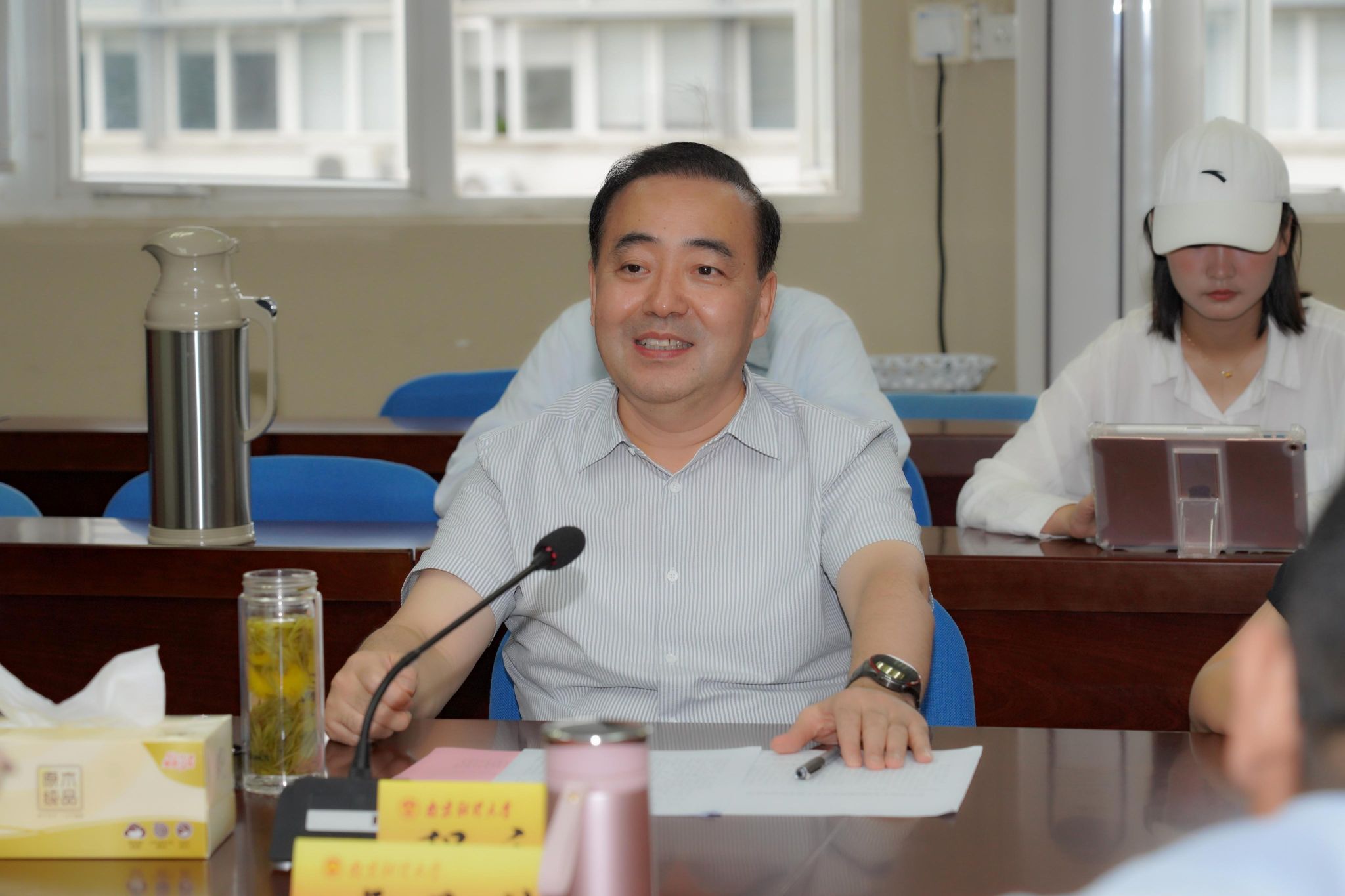 9月26日上午,校长程永波赴马克思主义学院主持召开现场办公会暨宣讲党的二十届三中全会和全国教育大会精神专题课。马克思主义学院领导班子全体成员、教师代表及研究生代表,党政办副主任沈国彬,党委宣传部副部长龚莉红,党政办秘书科科长欧亚参加会议。