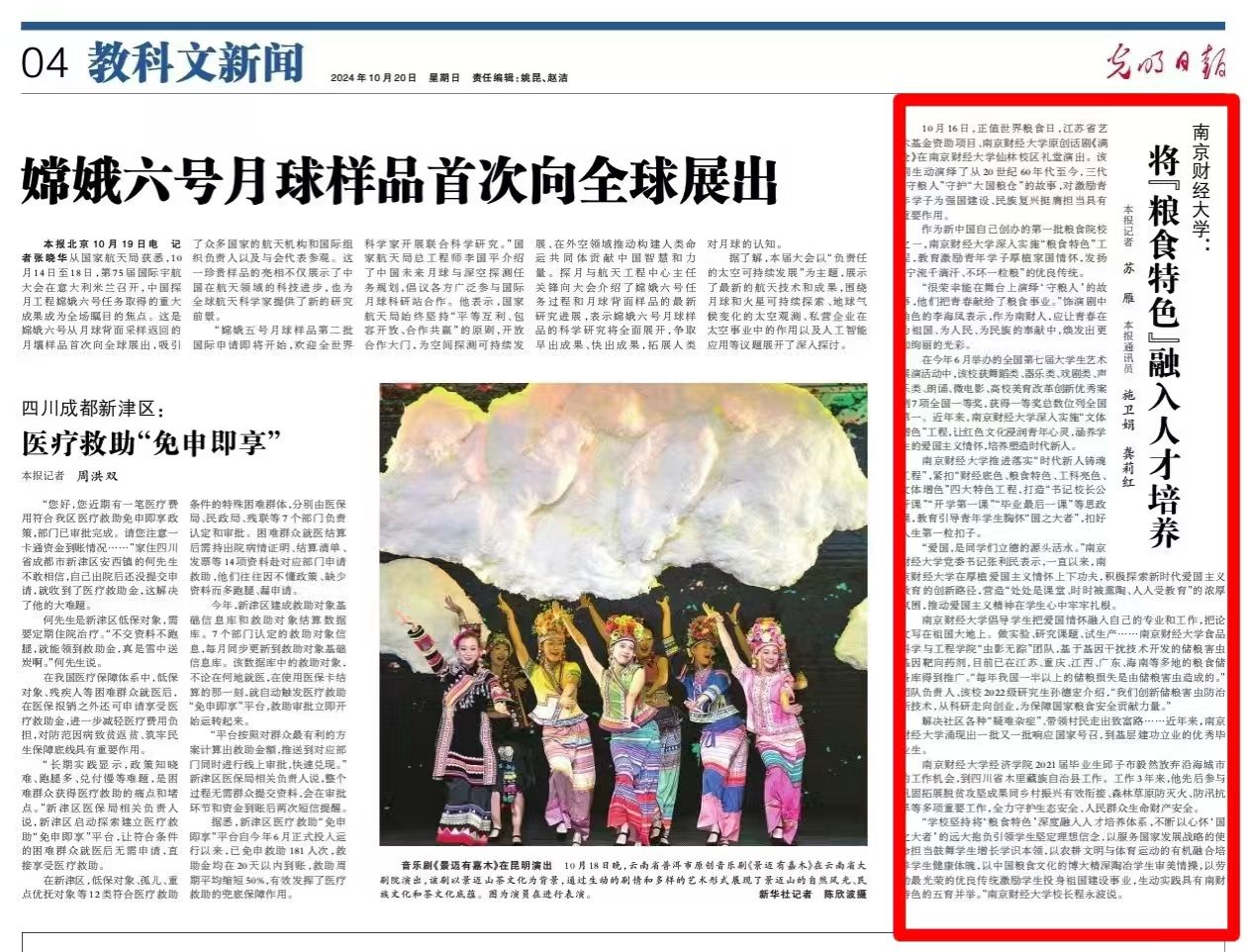“很荣幸能在舞台上演绎‘守粮人’的故事,他们把青春献给了粮食事业。”饰演剧中角色的李海凤表示,作为南财人,应让青春在为祖国、为人民、为民族的奉献中,焕发出更加绚丽的光彩。