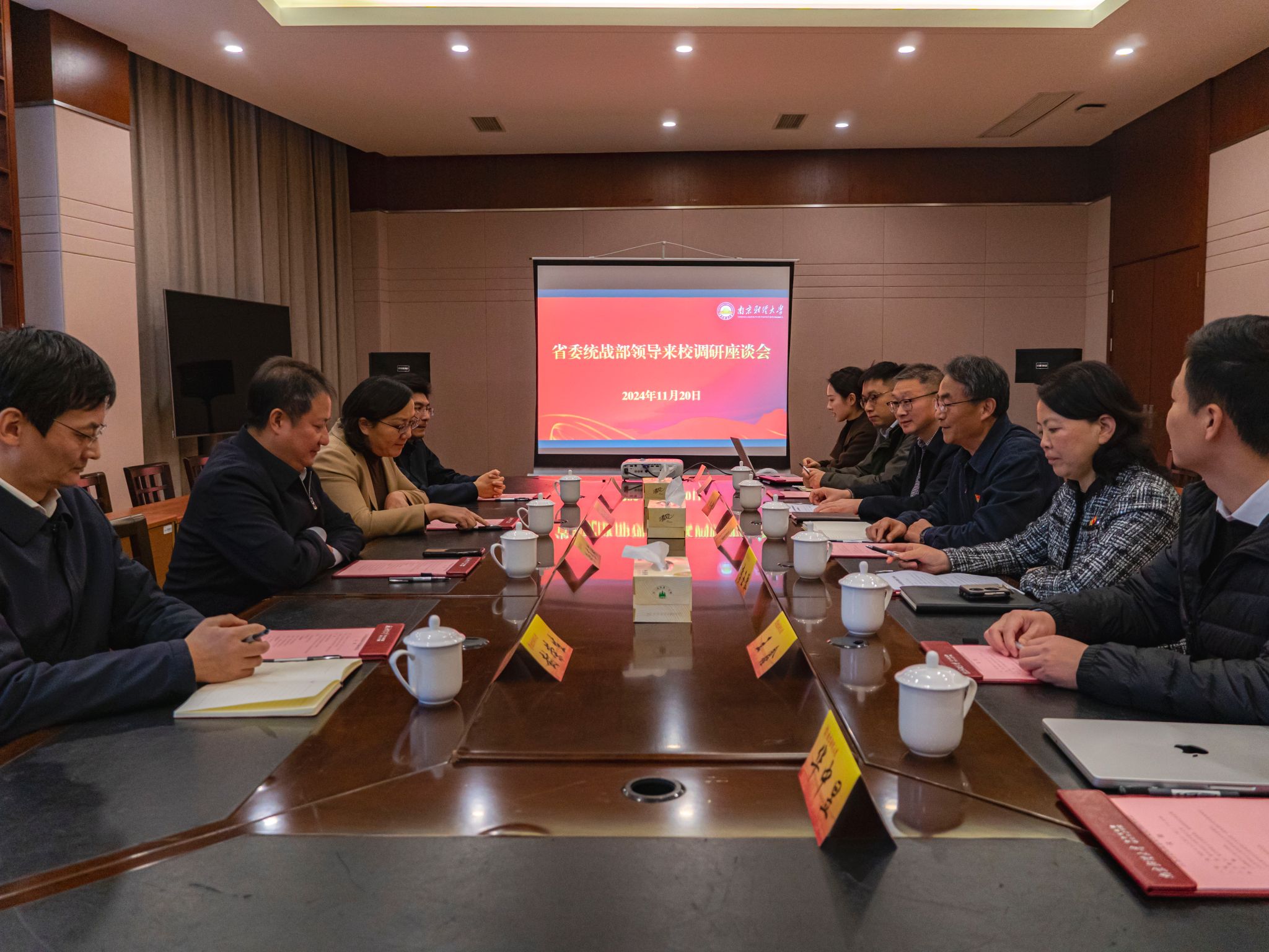 随后,在仙林校区美术馆会议室召开调研座谈会。座谈会上,李群副书记对徐东海副部长一行到访表示热烈欢迎,对省委统战部长期以来给予伟德官网统战工作的关心支持表示衷心感谢。他表示,学校党委高度重视统一战线工作,积极完善大统战工作格局,自2022年获批江苏省统战理论研究基地以来,取得了较好的工作成果。学校将以此次调研为契机,着力提升统战理论研究的专业化水平,全力推进基地建设提质增效,不断推动学校统战工作创新发展。