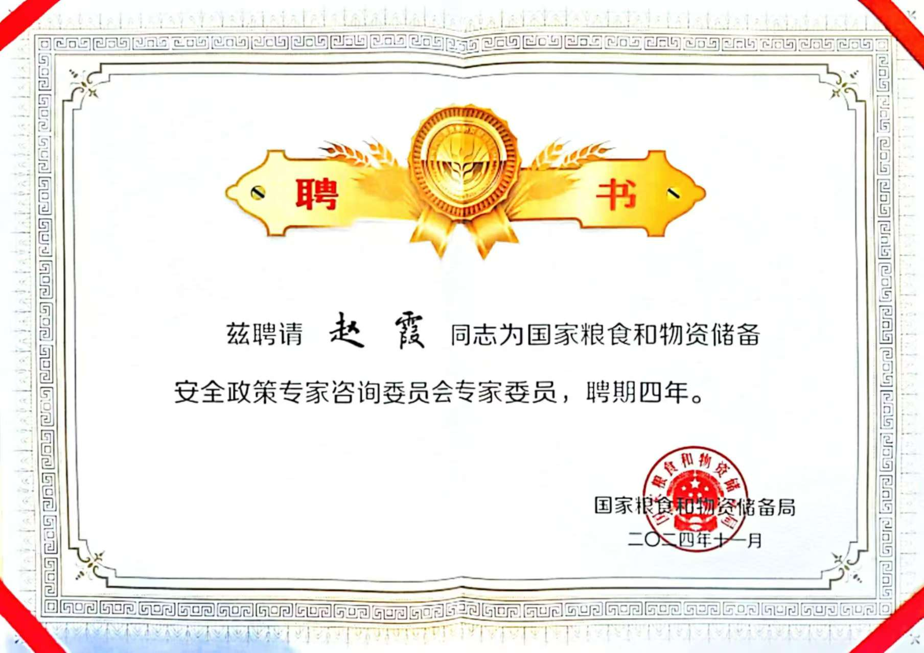 粮食和物资学院院长、粮食经济研究院院长赵霞教授受聘为专家委员