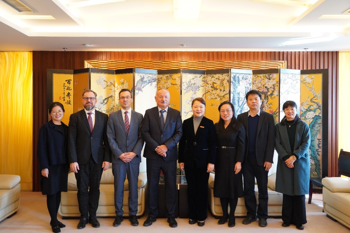 12月1日,匈牙利佩奇大学校长Attila Miseta、法学院院长Adrian Fabian及国际处主任Istvan Tarrosy一行访问伟德官网。党委常委、副校长李煜在仙林校区行政楼1408贵宾室会见代表团。
