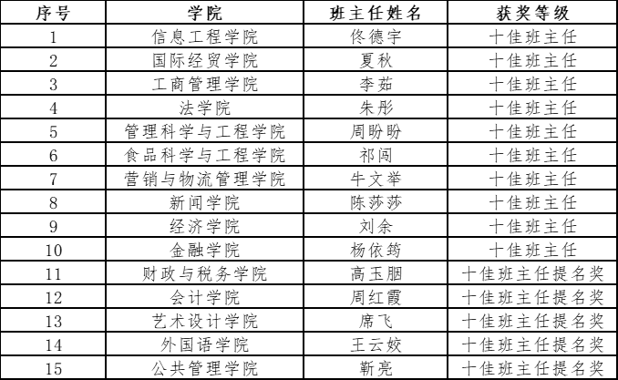 附录:第二届“十佳班主任”工作展评获奖情况