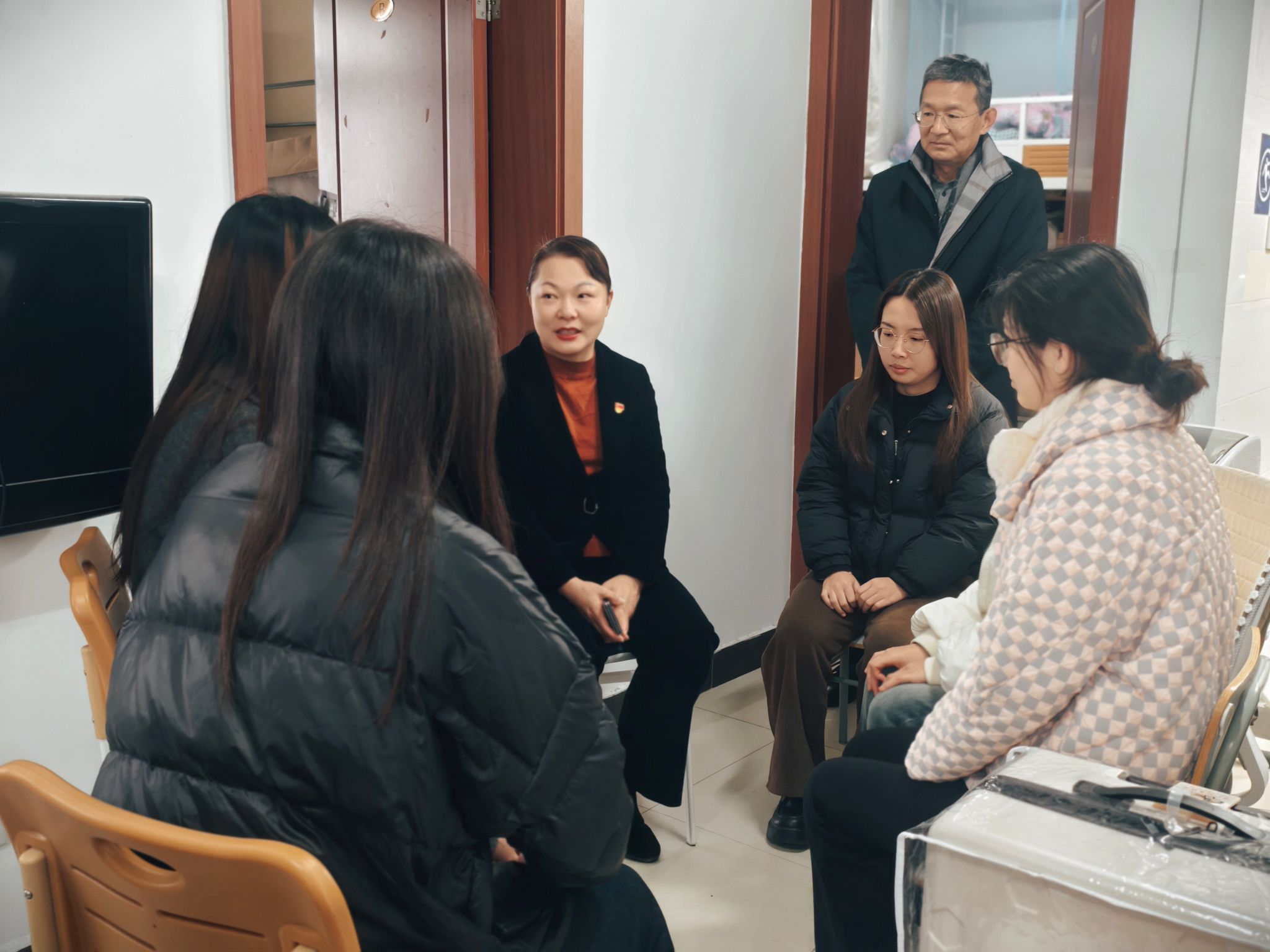 李煜副校长首先向同学们表示了亲切关怀与问候,“你是贵州遵义的吧?”“你们准备考公务员吗?“毕业论文写得怎样啦?”一句句贴心的话语,瞬间拉近了师生的距离。李煜副校长详细了解了同学们在思想、学习、生活方面的困惑和想法,并对大家关心的问题进行了耐心解答。针对目前正处于研究生关键阶段的同学们,李煜副校长提出关于未来发展和就业的宝贵建议。她勉励同学们要保持积极的心态,珍惜在校时光,努力提升专业素养和综合能力,树立正确的择业观,为未来的职业发展打下坚实基础。李煜副校长表示,学校相关职能部门将共同努力,为学生创造更优质的学习生活环境,并一如既往地支持学生的全面发展。