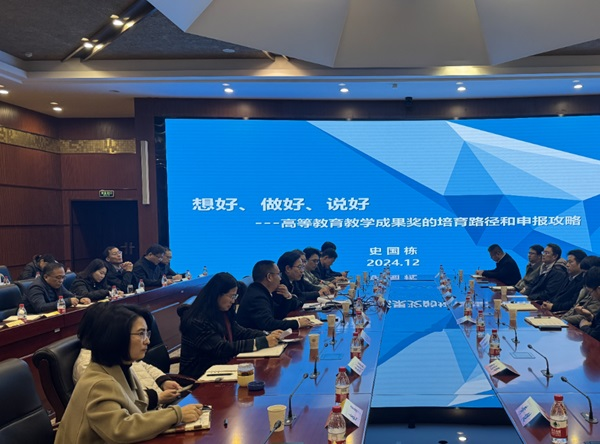 会上,史国栋教授从教学成果的基本内涵、优秀成果的基本特征、成果申报中通常出现的基本问题、成果载体的基本概念和成果申报的基本思路五个方面,系统阐述了教学成果奖申报过程中的关键事项。他强调,优秀的教学成果不仅需要具有独创性、新颖性、实用性,还应具备理论研究、实践检验、应用推广基础,实现与国家发展战略、区域社会经济发展需求、高等教育发展趋势及高等教育热点难点和院校共性关键问题的结合,在教育教学理论、实践模式和技术方法上有所创新,并向一线专业、课程改革建设和学生倾斜,向应用和集成创新倾斜。