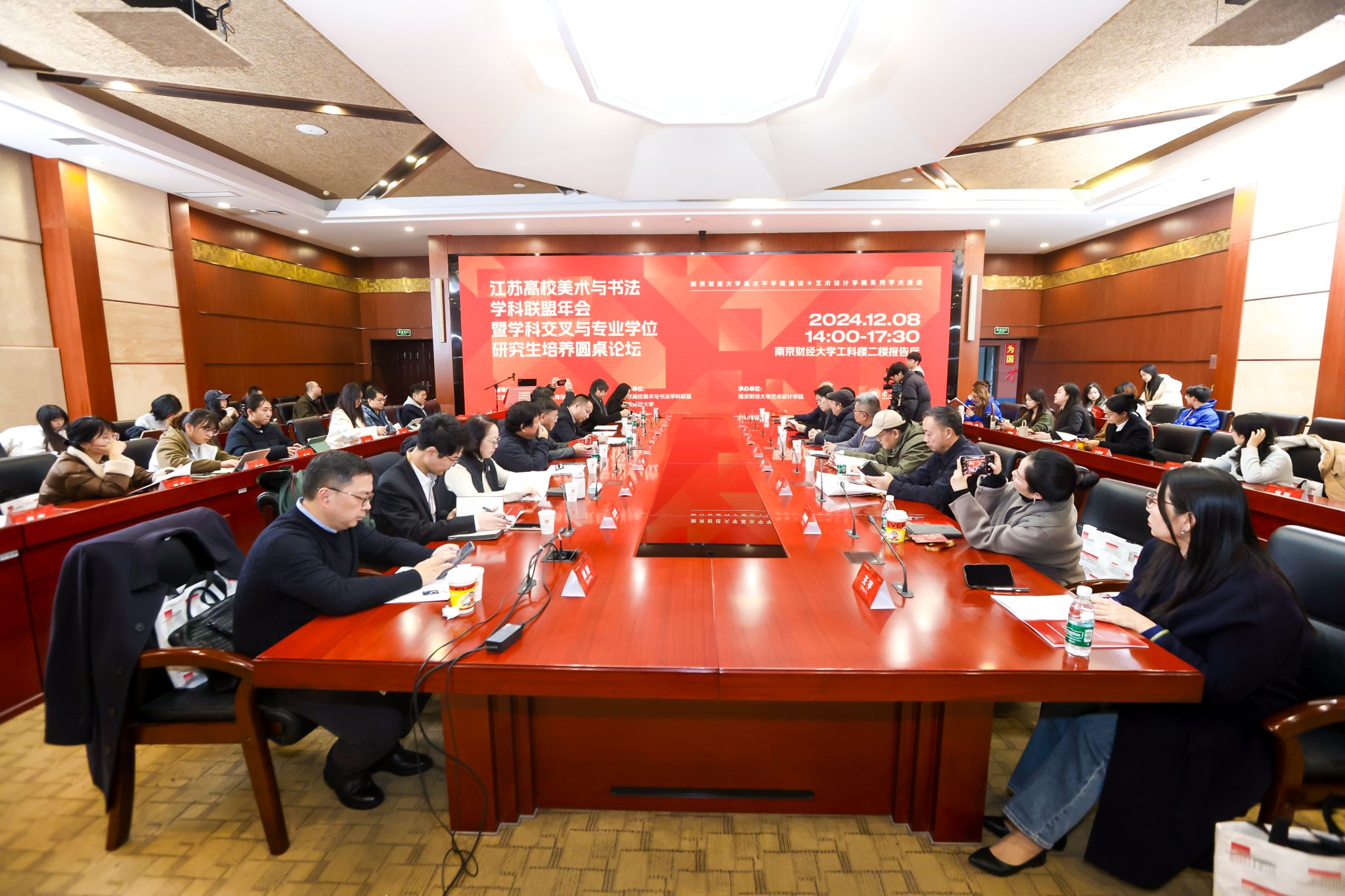 12月8日下午,江苏高校美术与书法学科联盟年会暨学科交叉与专业学位研究生培养圆桌论坛在仙林校区工科楼二楼会议室举行。本次会议由江苏省艺术学类研究生教育指导委员会支持、江苏高校美术与书法学科联盟和伟德官网主办、伟德官网艺术设计学院承办。党委常委、副校长叶林祥,南京艺术学院党委常委、副校长、江苏省艺术学类研究生教指委委员、美术与书法专委会主任李彤出席开幕式并致辞。开幕式由艺术设计学院院长丁蕾主持。