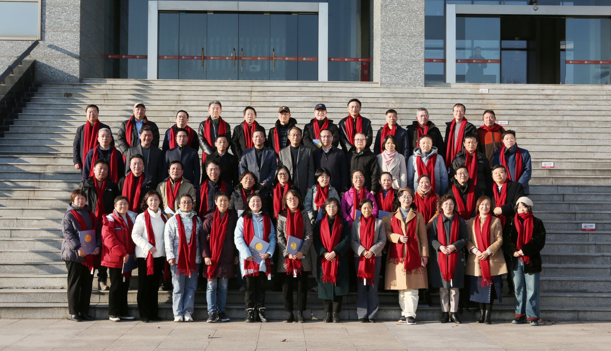 张利民书记等与会校领导为荣休教职工送上象征温暖的红围巾以及精美的荣休纪念册。