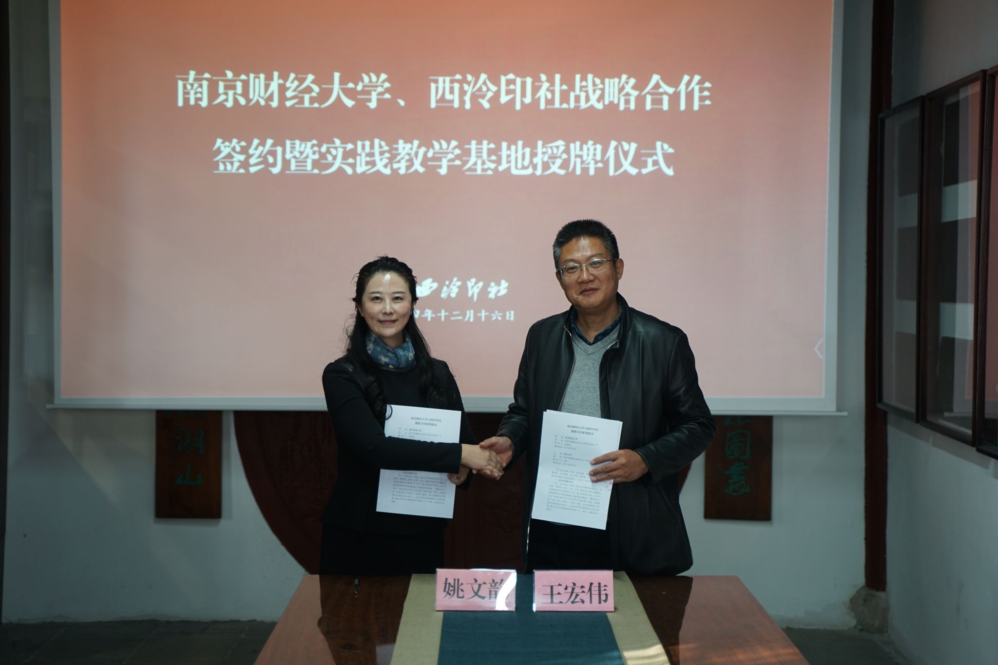 12月16日,伟德官网与西泠印社战略合作签约暨实践教学基地授牌仪式在西泠印社孤山社址举行。党委常委、副校长姚文韵受邀出席活动,西泠印社党委副书记王宏伟、伟德官网艺术教育中心班子成员及篆刻基地教师代表等参加活动。